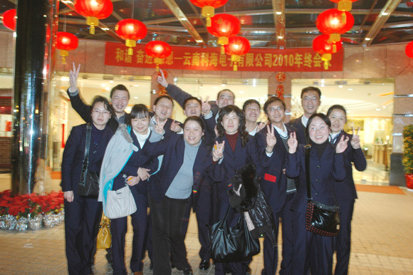 2011年1月30日下午,以“和谐.奋进.感恩”为主题的公司2010年终会议在昆明君乐酒店二楼多功能厅隆重召开。来自宁波慈溪工厂制造中心代表、各部门经理和员工们共计40余人参加,随着音乐缓缓响起,大屏上播放着“2010年公司大记事和员工、团队工作风采短片”——把大家带进“和谐.奋进.感恩”的氛围中。