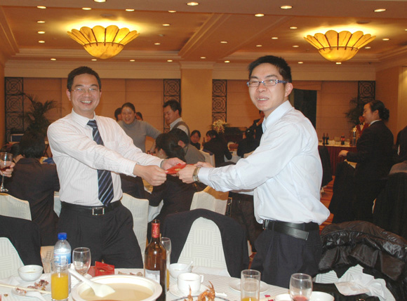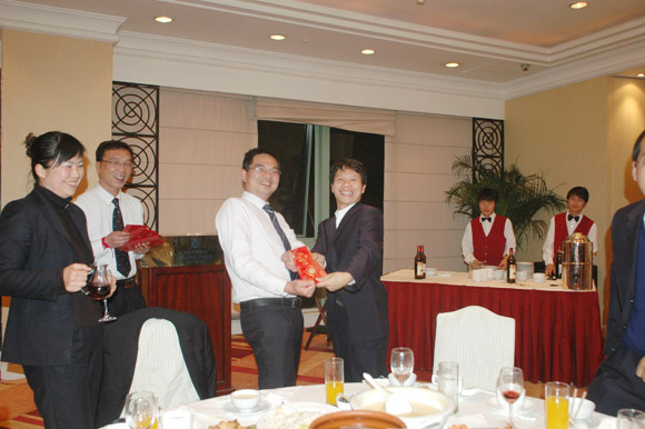 会议结束后全体员工欢聚一堂,共进晚餐,员工之间相互激励士气,增进了感情,强化了内部沟通,彼此给予认同。